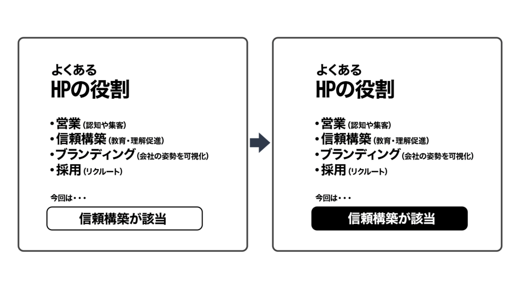 左よりも右の方が「信頼構築が該当」という文字に目が行きませんか?