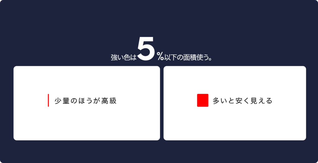 一方、右の例のように面積が大きくなると、主張が強すぎて「チープ」「子どもっぽい」印象に。